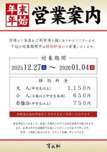 | 岩盤浴 (平日・休日料金別) |