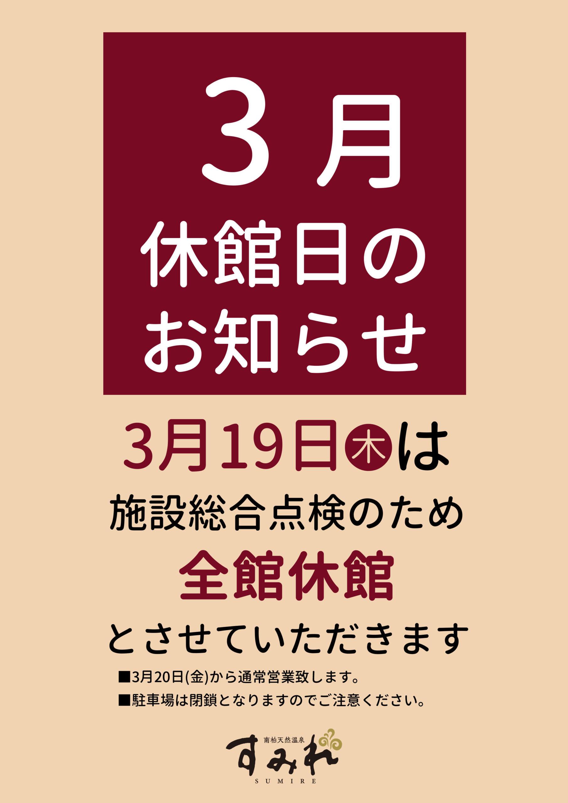 3月休館日のお知らせ